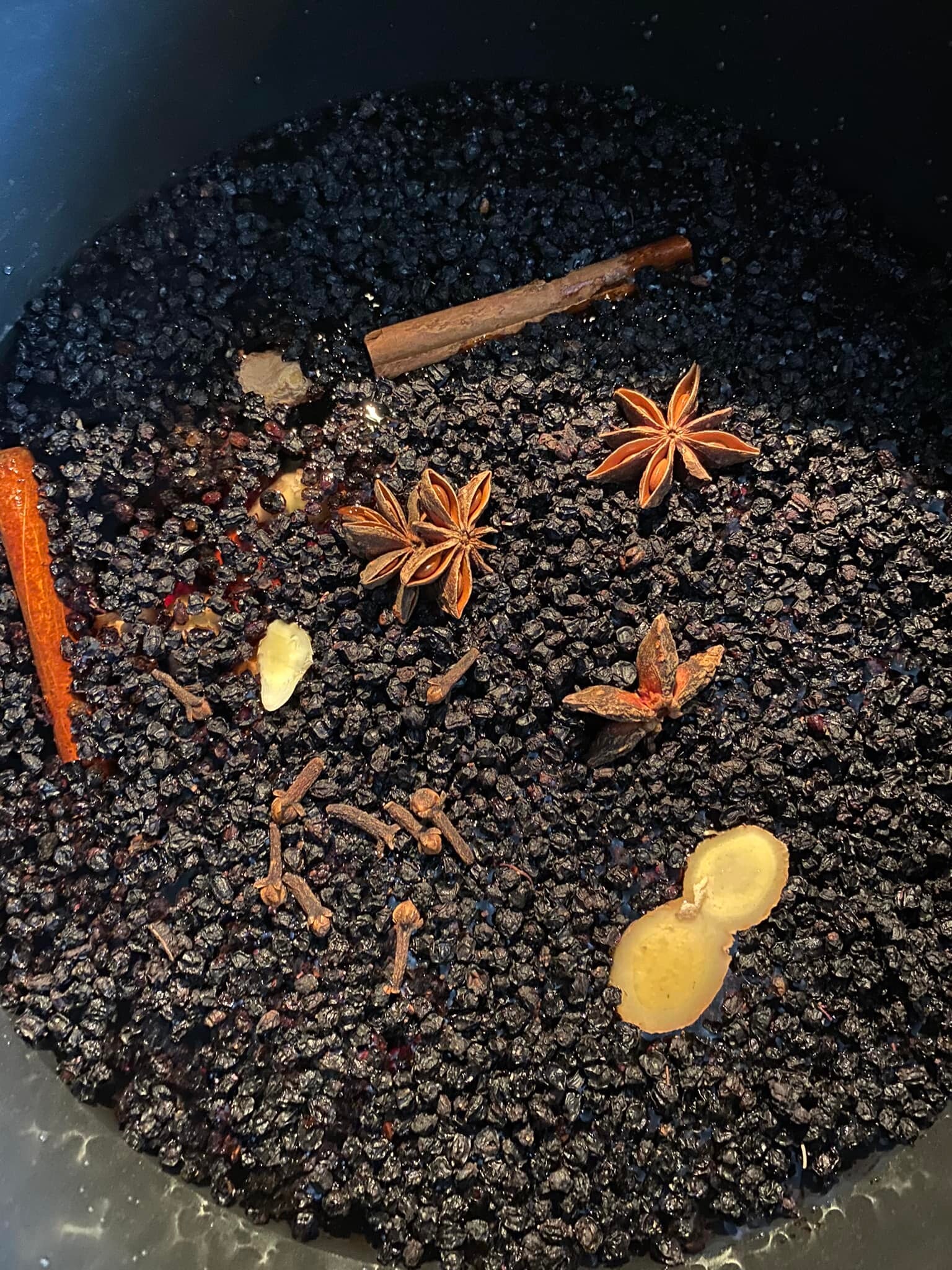 elderberry, clove, fresh ginger root, ceylon cinnamon sticks, star anise, raw, local honey, purified water