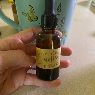 1. Fill a glass canning jar 1/4 to 1/2 of the way with crumbled up dried purple dead nettle